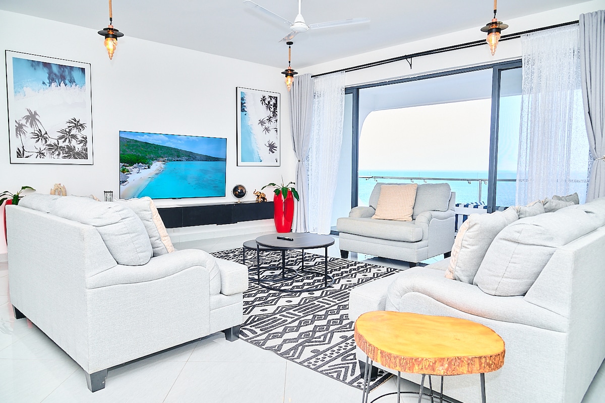 Penthouse 3Br Moden dengan pemandangan laut & kolam renang