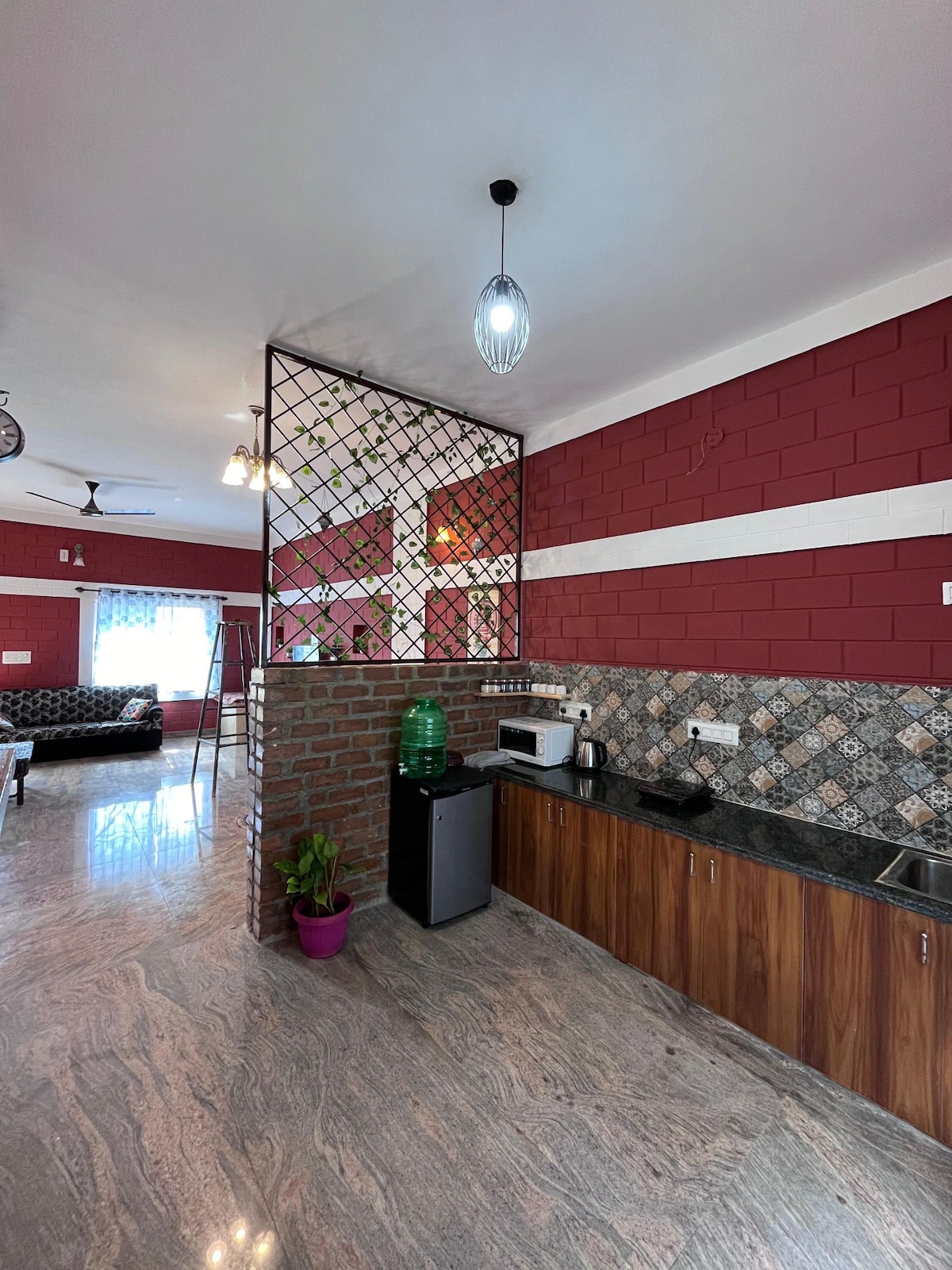 AURA'S NEST | Private 2BHK Villa | Young Crowd | Couples & Students ROOM FEATURE Bedroom:Clean bed, mirror, AC Living:TV Streaming & cozy space Bath:Soak in Big-Bathtub Outdoor: Bonfire or BBQ Kitchen:Gas Stove Utensil & Fridge Dining:Pub Style ON DEMAND Help Oncall Food Swiggy/Zomato Cab Ola/Uber Spa UC App AMENITIE Fridge to chill beer Aircooler Cooling 35L Power inverter Outdoor Seating NEARBY Concert:Embassy Ridding school,Terraform Pubs & Café Lakes for Scenic view Vineyard for Winetour