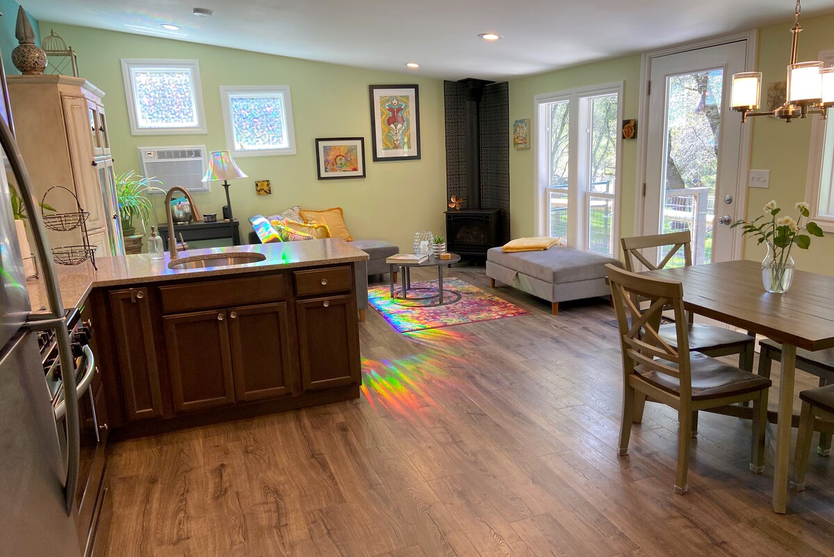 Apartmen yang kompak dan serba lengkap ini (dengan pintu masuk persendirian) bersambung dengan rumah yang direka bentuk secara seni bina yang terletak di lereng bukit berhutan yang menghadap padang rumput yang besar. Lokasi terpencilnya, 6 minit memandu di atas bandar Oregon House, adalah tempat yang sesuai untuk percutian. Dengan seluruh apartmen untuk diri anda sendiri, ia boleh menjadi tempat percutian yang sempurna, hujung minggu yang romantik, atau ruang kerja/belajar yang tenang. Tempat untuk berehat, bermeditasi, membaca dan merasai dunia yang jauh daripada kebimbangan harian. Tiada tempahan hari yang sama diterima.