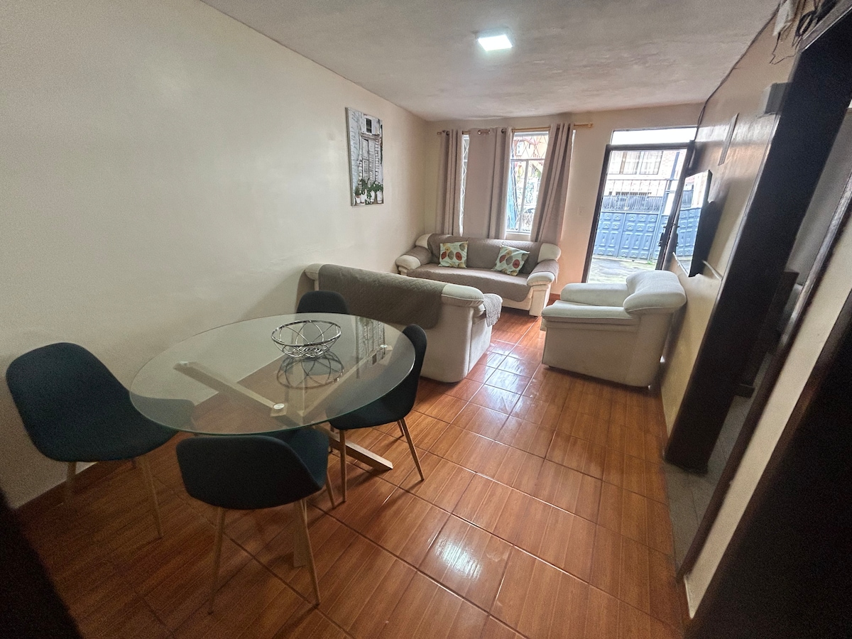 Nikmati pengalaman yang tidak dapat dilupakan bersama keluarga atau sekumpulan rakan anda di apartmen yang sangat elegan, moden dan bergaya ini. Terletak di tingkat 3, berperabot lengkap, dengan pemandangan panorama bandar dan gunung; selesa di kawasan pusat dan sangat selamat. Ia mempunyai ruang tamu, smartv, ruang makan, dapur, bilik mandi sosial, 3 bilik tidur, 2 bilik mandi lengkap, 2 balkoni, akses ke teres. Wi-Fi, internet, air panas (24 jam) garaj automatik persendirian untuk 1 kereta. Katil: 3 (2 Queen, 1 Helaian) Kapasiti: 6 Tetamu.
