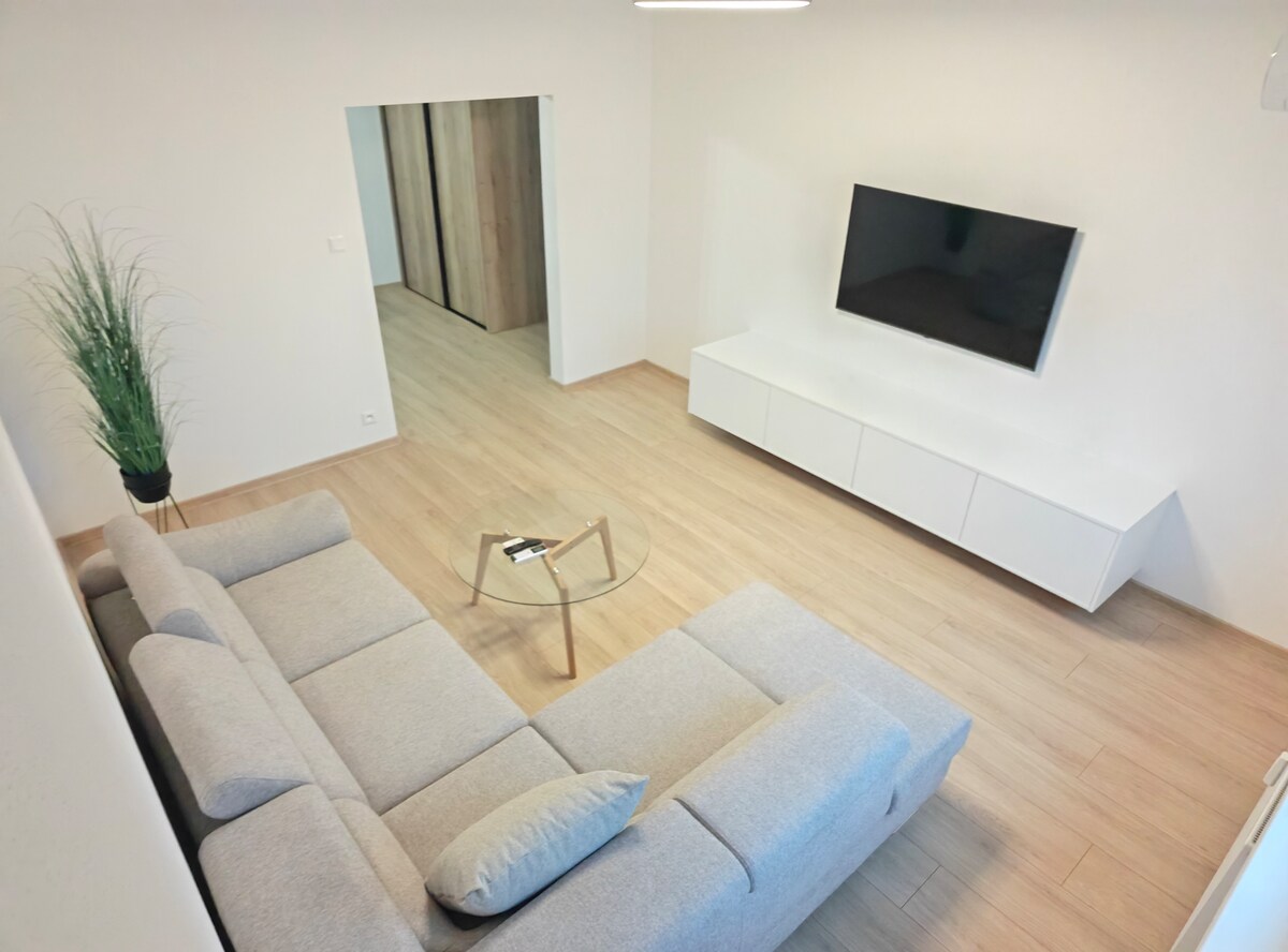 Apartmen studio moden berhampiran pusat bandar dengan tempat letak kenderaan persendirian dan teres yang menghadap Banská Bystrica. Reka bentuk dalaman oleh arkitek dengan katil yang selesa di belakang langsir, dapur lengkap, Wi-Fi optik pantas, TV Pintar, pemanas lantai dan mesin basuh pengering. Sesuai untuk pasangan dan pengembara.