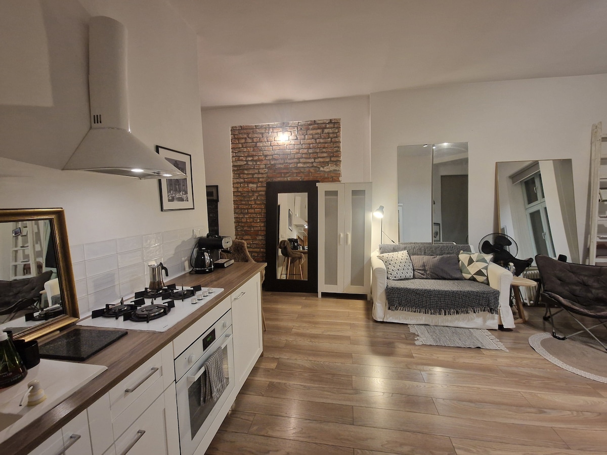Studio "Kamienica" z balkonem. Centrum. Łóżko+sofa