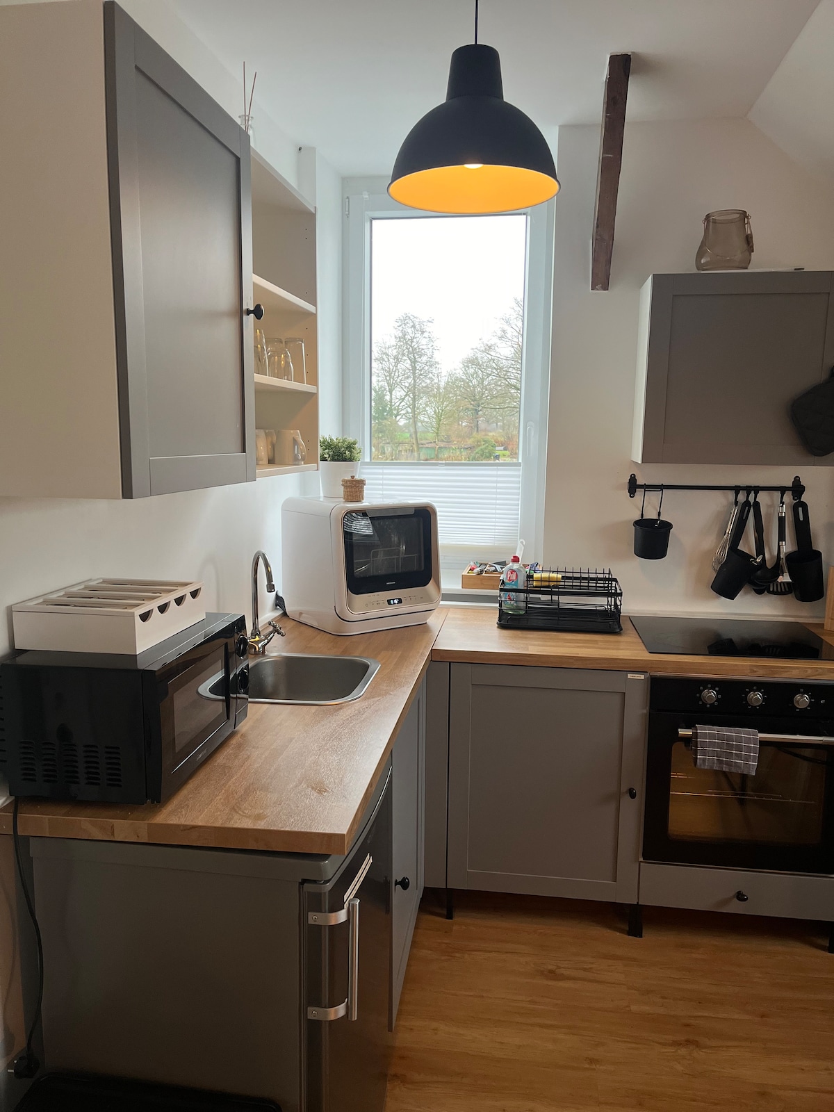Selamat datang rumah kami! Di belakang rumah kami anda akan menemui apartmen moden baru, sesuai untuk berehat dan menarik nafas. Anda dilengkapi dengan dapur musim panas untuk pengembaraan memasak anda, bilik mandi bergaya dan bilik tidur terbuka dengan katil kelamin yang selesa (1.60 x 2.00 m). Teres kayu persendirian di kawasan desa menjemput kopi pagi yang santai dan malam yang selesa dengan wain. Yang paling menarik? Anda ada seluruh apartmen untuk diri anda sendiri – tiada tekanan, hanya ketenangan dan kedamaian!