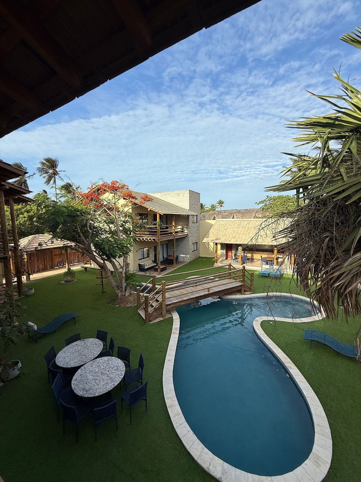 Terus di atas laut. Suite mewah bebas untuk sehingga 8 orang. Dengan teres persendirian seluas 60m2 dengan dapur/bar/BBQ. Teres ini seperti ruang tamu besar dengan pemandangan laut 180 darjah. Suite ini mempunyai pintu masuk persendirian. Dalam masa kurang daripada 20 langkah anda melalui kediaman persendirian betul-betul di pantai Barra Grande yang indah atau di bar pantai Trabalha Brasil. Di sana, juga terus di laut, rumah pantai tetamu menikmati sarapan pagi.