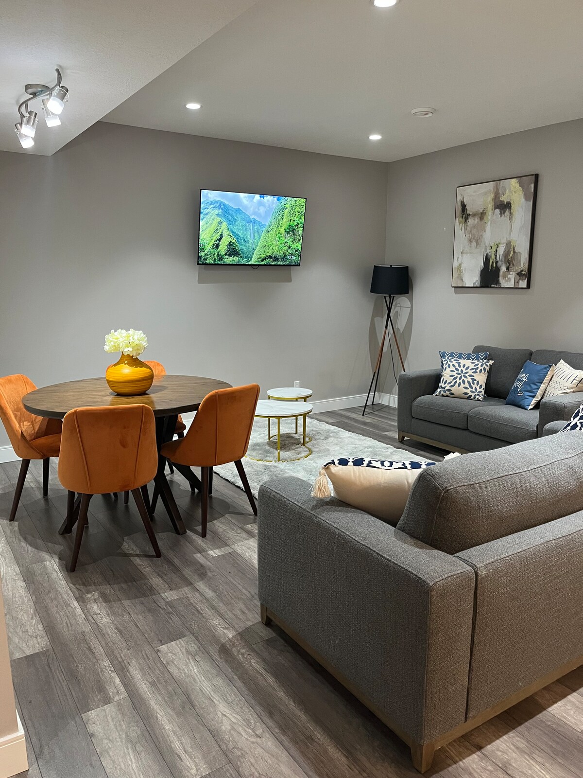 ★Kualiti★ Hotel Ruang − Dilantik dengan Indah Apartmen bawah tanah★ berperabot lengkap dengan pintu masuk berasingan. ★Ruang tamu persendirian yang besar dengan TV skrin besar, ruang untuk kerja pejabat dll, Apple TV, Wifi percuma, dapur kecil, teh kopi, bilik mandi mewah dengan tab mandi berdiri percuma. Bilik Tidur berasingan dengan Europ. Katil ratu dengan tilam premium, ★Sejuk dan Nyaman ★Ultra Bersih TV ★Besar yang★ Santai dan Selesa dengan Netflix dan WIFI