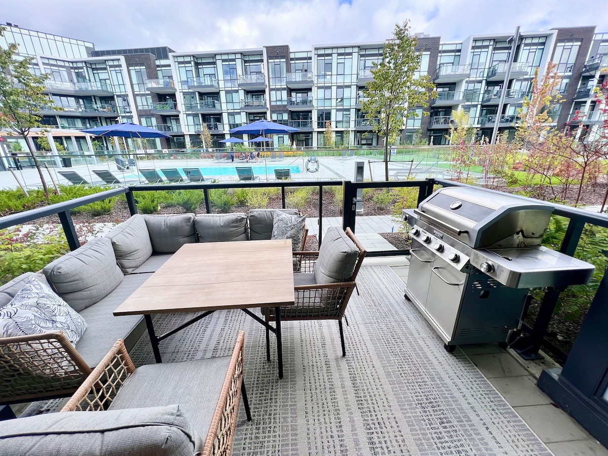 Nikmati daftar masuk awal dan daftar keluar lewat tambahan di kondominium 2+1 yang luar biasa di tingkat bawah bangunan Aquarius yang diingini di resort Friday Harbour. Direka secara profesional untuk keselesaan dan gaya. Bangunan Aquarius menawarkan kolam renang luaran, BBQ dan ruang duduk. Friday Harbour adalah resort sepanjang musim, 1 jam ke utara Toronto, yang menawarkan tempat makan mewah, LCBO, Starbucks dan kedai runcit dalam jarak berjalan kaki. Nikmati aktiviti & acara bermusim sepanjang tahun, sukan air, muzik secara langsung & banyak lagi!