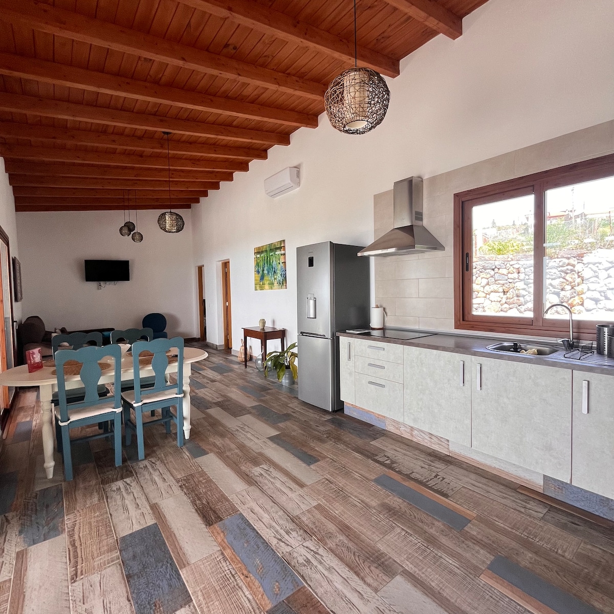 Modern Solar Powered Home, the house is off-grid, meaning it gets its electricity from the sun and a standby generator if needed. Restored in April 2021 the cottage is just before Teide National Park. Home has full cooks open kitchen and living room with all one might need, gas stove and modern appliances. Ensuite bathroom with fully functional sink, shower and toilet. Please read the information on how to get here and check in after booking.
