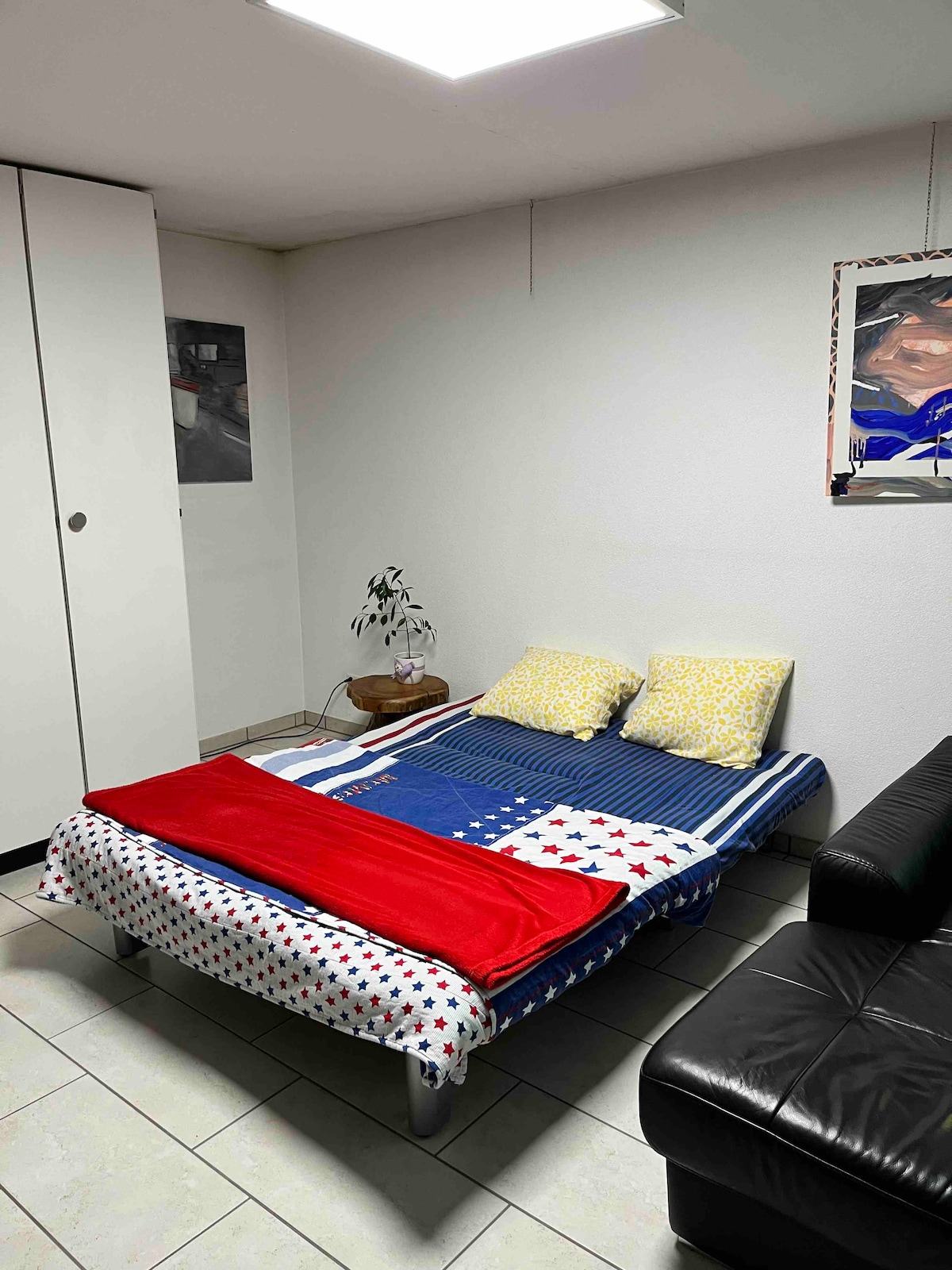 Lupakan kebimbangan anda di ruang yang luas dan tenang ini. Menyewakan Apartmen Studio Bawah Tanah di kejiranan yang tenang. (Sebahagiannya berperabot) Studio mempunyai pintu masuk berasingan dari sisi rumah dengan banyak cahaya semula jadi. Butiran: Saiz: 35m2 Alamat: 4132 Muttenz (Hentian Tram - 2 minit berjalan kaki dan Muttenz Bahnhof - 6 minit berjalan kaki) Dapur dan Bilik Mandi sendiri
