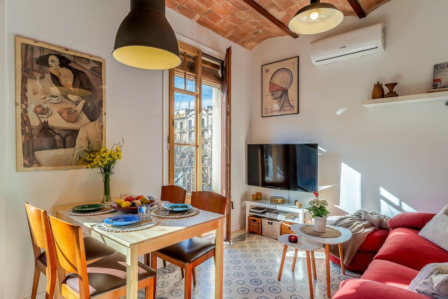 Stylish apartment on a semi-pedestrian street in the iconic Gracia neighborhood, 800 meters from Sagrada Familia and Hospital de Sant Pau, and a 20-minute walk to Parc Güell or Passeig de Gracia. Comfortable, quiet, and elegant, the apartment is fully renovated. It features a queen-size bed, high-quality linens and towels, AC, kitchen, and sofa bed. Enjoy 2 SmartTVs (Netflix, HBO...) and high-speed Wi-Fi. This cozy apartment offers access to a beautiful, dynamic neighborhood from a serene street