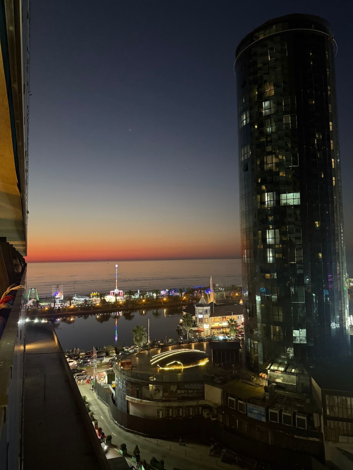 Apartmen baju mewah seluas 50 meter persegi ini terletak di tengah-tengah batumi. Di dalam bangunan berprestij (Courtyard by Marriott). Sangat dekat dengan laut (jarak 100 meter) Apartment terletak di atas tepung 25 dengan pemandangan laut yang luar biasa. Ia mempunyai semua peralatan yang diperlukan untuk berehat dengan selesa dan tinggal untuk jangka panjang. Peralatan dapur, serta seterika, mesin basuh, pembersih vakum dll. Building has inside pool, spa and casino and also high class restaurant, where breakfast can be served for an additional fee