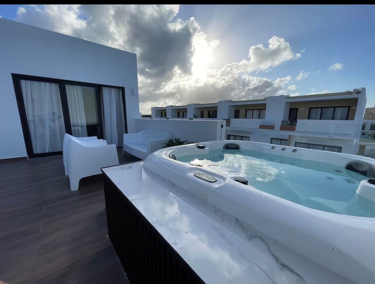 Apartmen mewah baru dengan kolam renang persendirian di teres, hanya beberapa langkah dari salah satu pantai utama Bavaro. Konsep apartmen baharu di Punta Cana yang akan memberikan anda keselesaan, privasi dan keselamatan untuk menghabiskan percutian anda. Bilik luas, dapur lengkap, perabot berjenama, Wi-Fi berkelajuan tinggi, daftar masuk dalam talian dengan teknologi terkini. Elektrik sebahagiannya disertakan. Kami menampung $ 10 USD semalam, jika kos melebihi jumlah tersebut, perbezaannya akan dibayar oleh tetamu.