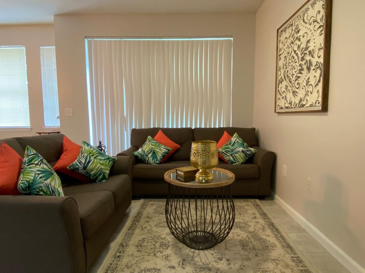 *Baru dikemas kini dengan perabot & hiasan baharu!* Runaway Beach Club Resort terletak 3 batu ke dunia Disney dan 10 batu ke universal . Anda boleh memilih untuk menjadi sebahagian daripada landskap Orlando atau hanya berehat dan berehat. Lebih banyak kemudahan telah ditambah kerana anda kini mempunyai akses kepada Calypso Cay, termasuk Golf Mini, kolam renang, gelanggang bola keranjang & bola tampar & taman permainan kanak-kanak & pad percikan! Bilik tidur utama berjalan di dalam almari anda akan menemui pek dan bermain untuk digunakan untuk kanak-kanak kecil.