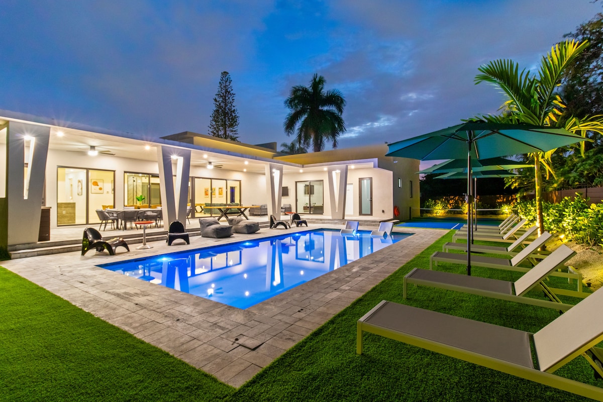 PENGALAMAN SUPERHOST 5 BINTANG! Rumah oasis 4 bilik tidur yang CANTIK ini terletak berhampiran dengan semua yang menjadikan Miami hebat. Penginapan unik ini mempunyai kolam renang BERPEMANAS yang besar dengan pencahayaan & tempat duduk luaran yang indah, yang tetamu kami tidak dapat mencukupi! Rumah yang cantik ini mempunyai bilik permainan & teater rumah yang sangat menyeronokkan, yang sesuai untuk tetamu daripada semua peringkat umur! Ruang tamu rumah sesuai untuk berehat & menikmati TV besar dengan Netflix. Malah, semua bilik tidur dilengkapi dengan televisyen pintar untuk keseronokan anda!