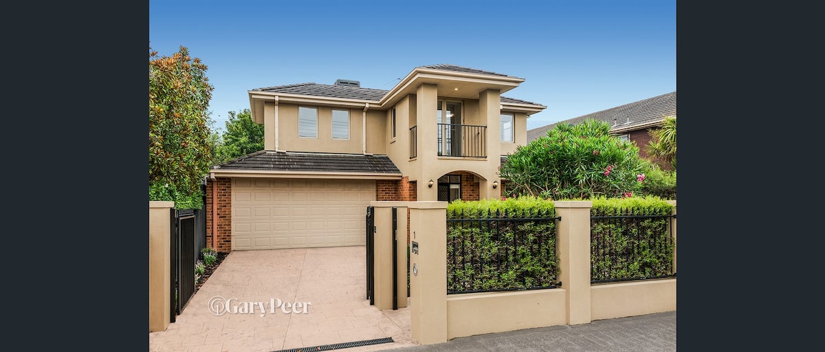 Four Bedroom, ruang tamu yang besar digabungkan dengan taman landskap yang hebat termasuk kolam renang dan meletakkan hijau. Berhampiran dengan pantai Brighton, dan berjalan kaki yang mudah ke pengangkutan awam dan kedai. Lokasi yang sempurna untuk meneroka padang golf tali pinggang pasir yang terkenal di Melbourne. Mesra permaidani, hamper yang dialu-alukan. Semuanya dibekalkan. 10 minit berjalan kaki ke kereta api dan trem, perjalanan 20 minit ke CBD melbourne. dikelilingi oleh taman dan padang golf. Internet tanpa had dan TV kabel dengan bunyi keliling. Semua bilik mempunyai pemanas dan aircon.