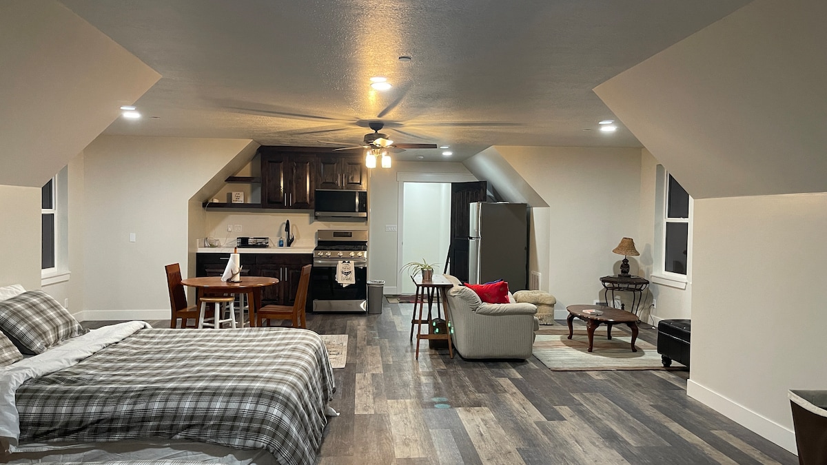 Selamat datang ke percutian Cache Valley yang sempurna! Apartmen studio yang menawan dan selesa ini terletak di lokasi utama, hanya beberapa minit dari hampir segala-galanya di Logan! Berehat di sini sambil meluangkan masa di Beaver Mountain Ski Resort yang indah. Kami juga dalam jarak berjalan kaki untuk USU Football, Basketball, Volleyball, dll. Dan, kami tidak jauh dari Pusat Bandar Bersejarah Logan yang indah. Ruang apartmen ini mempunyai pintu masuk luaran persendirian untuk masuk dan keluar dengan mudah semasa penginapan anda.