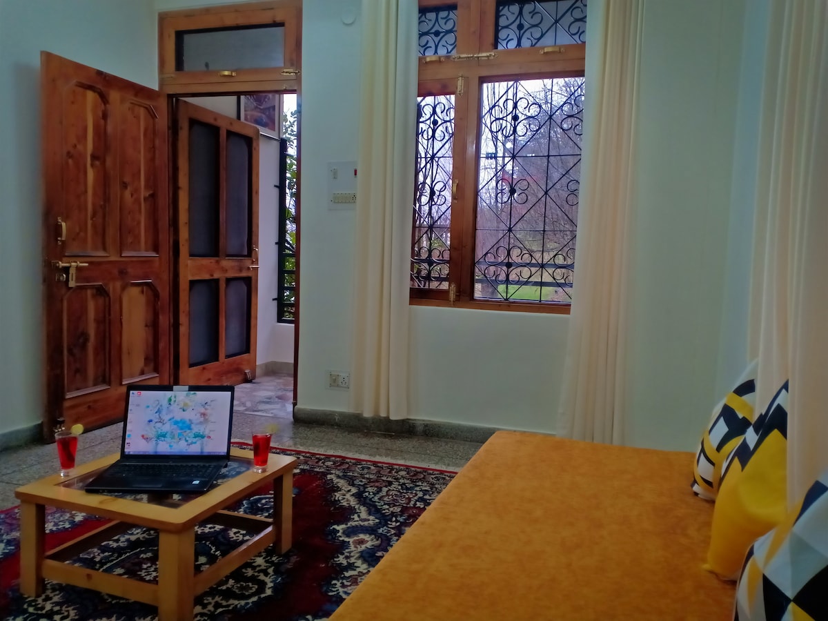 Bertenggek di tepi sungai yang mengalir, dengan pemandangan Dhauladhar yang megah, kami membuka 2BHK berhawa dingin sepenuhnya kami kepada keluarga dan kumpulan yang mencari penginapan yang aman di Lower Dharamsala. Ini ialah apartmen 2BHK di tingkat bawah dengan 2 bilik tidur, 1 dapur, 2 bilik mandi (1 bersambung, 1 tidak bersambung), 1 ruang makan, dan teres yang indah. Tetamu boleh mengakses taman umum, dengan laluan berjalan kaki terus ke sungai. Tetamu akan mendapat seluruh tingkat untuk diri mereka sendiri dengan privasi sepenuhnya.