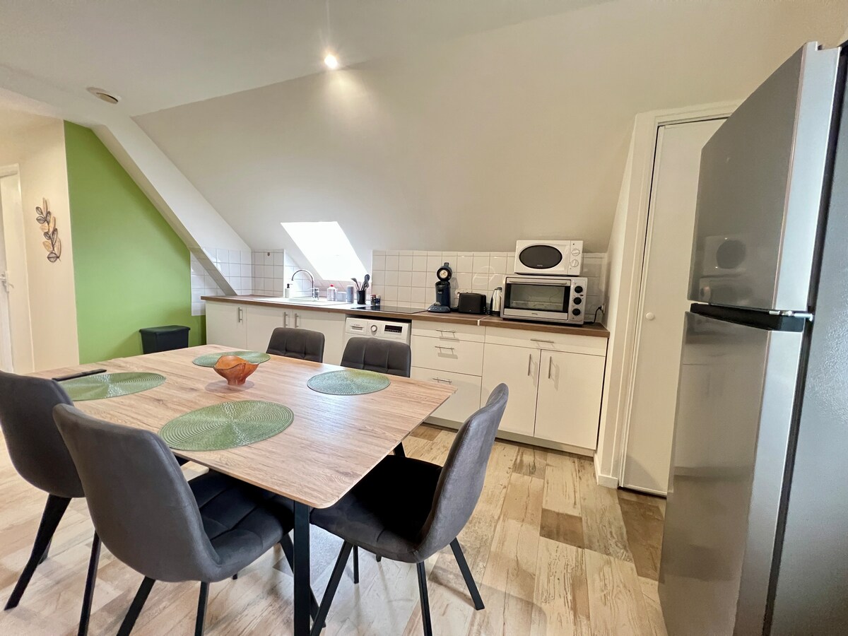 Kami mengalu-alukan anda dengan senang hati ke loteng lama yang diubah suai pada tahun 2023 ini. Nikmati batu-batu lama, teres kecil yang cerah, dan taman separa teduh. "Le Grenier", studio kira-kira 20m², menawarkan ruang tamu dengan sofa, meja tinggi, dapur kecil yang lengkap, katil sebenar (140x190), pancuran mandi besar (140x80), tandas berasingan. Jangan lupa untuk menempah balang makanan, papan dan sarapan kami jika perlu. Rehat yang tenang di kawasan desa!