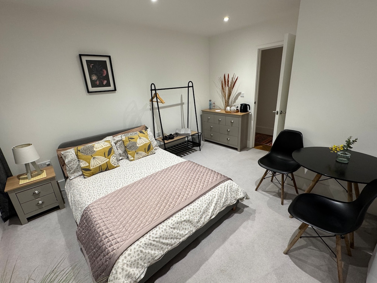 Bersantai di percutian unik dan tenang ini berhampiran dengan pusat bandar Bromley. Lengkap dengan pintu masuk sendiri, rumah tetamu bergaya ini mempunyai semua yang anda perlukan untuk penginapan anda. Katil kelamin, meja makan & kerusi, ketuhar, hob, ketuhar gelombang mikro, cerek, peti sejuk dan mesin basuh. Bilik mandi termasuk pancuran mandi elektrik dan terdapat wifi yang kuat dan tv yang dipasang di dinding dengan akses percuma kepada Netflix, Sky, Amazon dan Apple TV+. Cadar, tuala, pinggan mangkuk & peralatan makan sudah tentu disediakan.