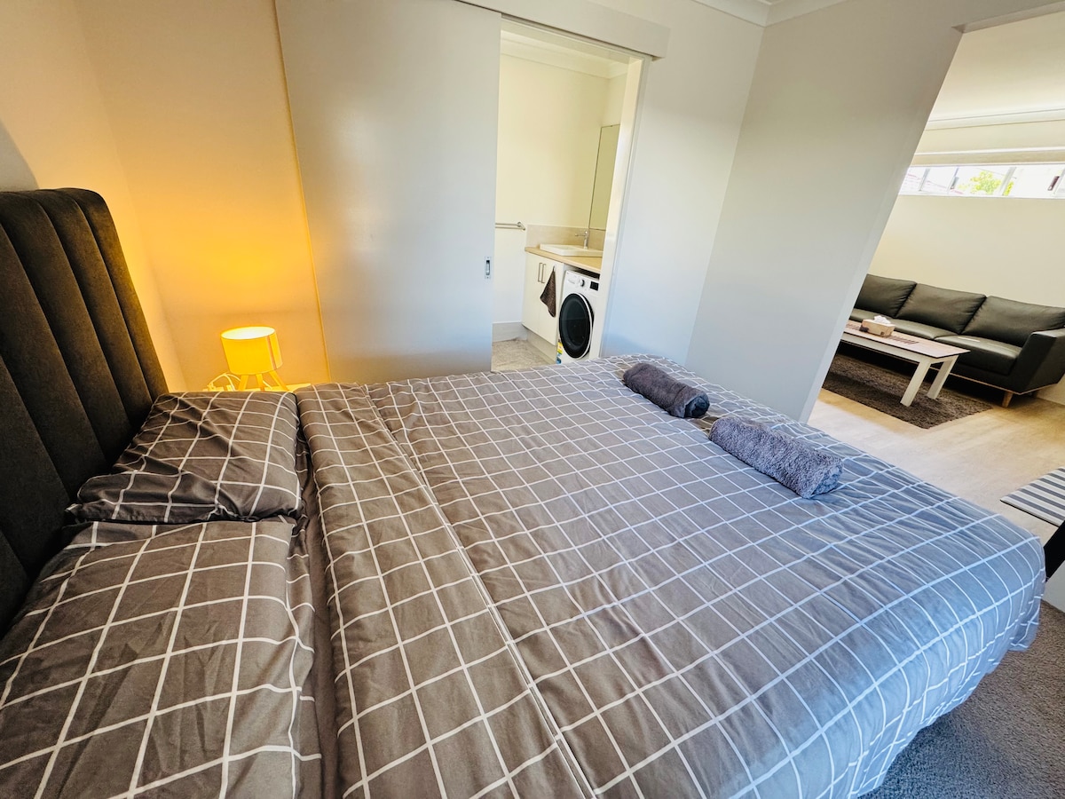 Apartmen saya mesra & menarik. Bilik tidurnya mewah dengan bilik mandi yang cantik dengan mandian kaki cakar. Dapur serba lengkap, dobi & halaman belakang berdaun, bbq dan dapur alfresco. Bilik keluarga termasuk ruang makan, lounge & TV Netflix skrin besar. Walaupun apartmen ini berada di bawah bumbung yang sama dengan tiga bilik hadapan yang kami sewa, ia benar-benar peribadi dan dipisahkan oleh pintu yang boleh dikunci, memastikan ruang dan keselesaan anda sendiri. Seluruh apartmen adalah milik anda untuk dinikmati semasa penginapan anda