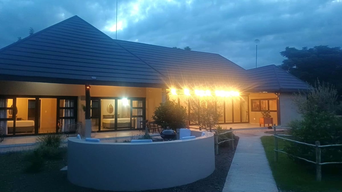 Mewah di dalam belukar. Rumah ini terletak di Zebula Golf Estate and Spa dengan 4 bilik tidur besar dan 2 kecil di dalam suite (12 katil dengan maksimum 8 orang dewasa) Rumah ini mempunyai 2 kawasan ruang tamu pelan terbuka dengan TV, saluran DSTV penuh dan Wifi tanpa had. Dapur serba lengkap. Kawasan hiburan tingkat atas dilengkapi dengan meja kolam renang dan dek dengan pemandangan kolam renang dan boma. Ia termasuk kawasan dek kayu tertutup dengan kolam renang yang mempunyai jaring keselamatan. Terdapat juga kawasan boma dengan firepit.