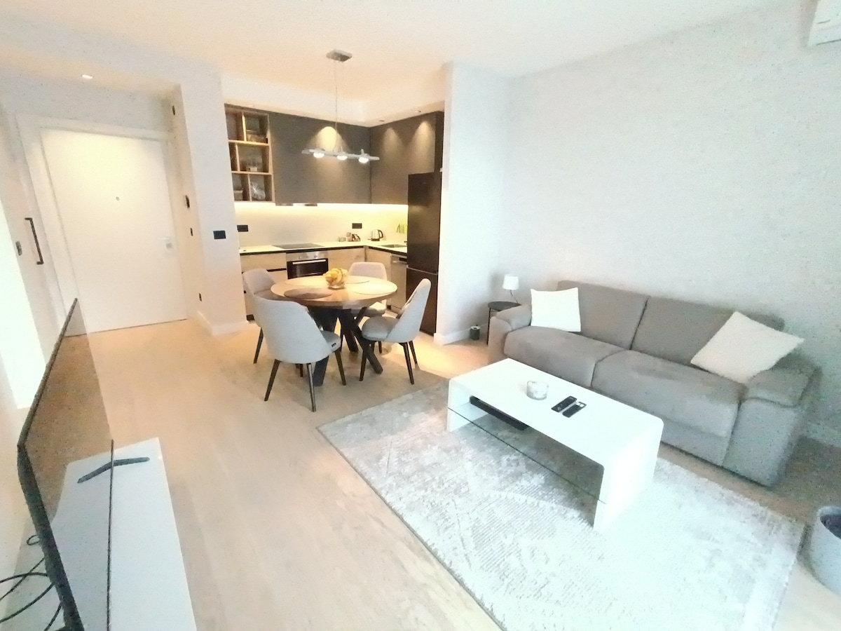 Apartmen ini telah diubahsuai sepenuhnya beberapa bulan yang lalu dan semuanya baru. Di dalam bilik tidur terdapat katil double besar yang selesa dan satu katil sofa besar di ruang tamu. Semua dalam cahaya yang diketuai secara senyap-senyap. Di dapur anda boleh menikmati periuk skrin rata moden, ketuhar, peti sejuk dengan peti sejuk beku, mesin basuh pinggan mangkuk dan mesin basuh serta meja bar besar. Bilik mandi berkaca dengan seramik marmar, ia sangat padat dan bersih. Bilik mandi dilengkapi dengan pengering rambut, tuala, set kebersihan.