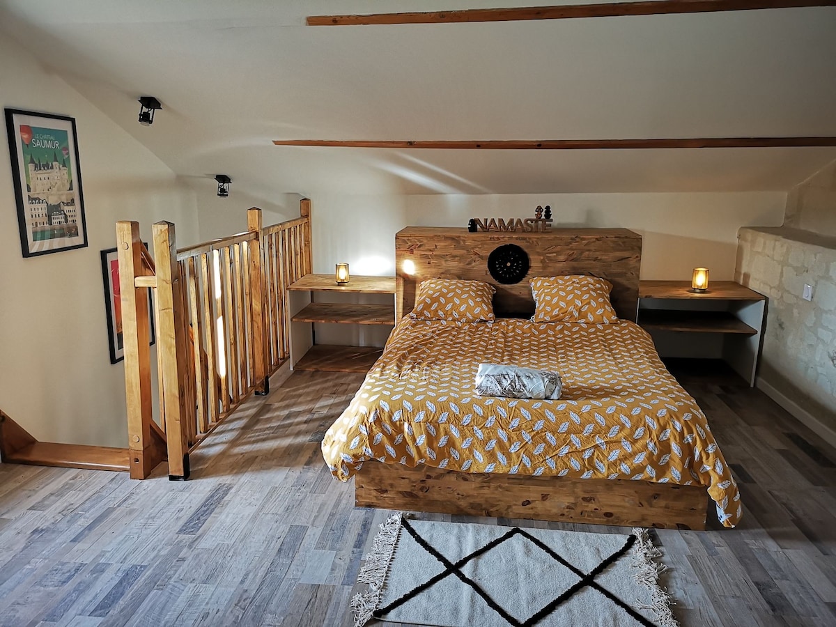 Tepat di pusat bandar Saumur, dinamik dan pelancong, berhampiran dengan restoran dan kedai, apartmen Haussmannian ini (65 m2 di 2 tingkat) adalah tempat impian untuk percutian romantik. Biarkan diri anda terkejut dengan gaya moden yang bergaya dengan perkhidmatan berkualiti (dapur yang lengkap, balneo berganda, katil saiz king dan banyak kejutan lain). Sesuai untuk meraikan hari lahir, lamaran perkahwinan, atau hanya untuk masa yang santai untuk dua orang. Berhenti di apartmen.
