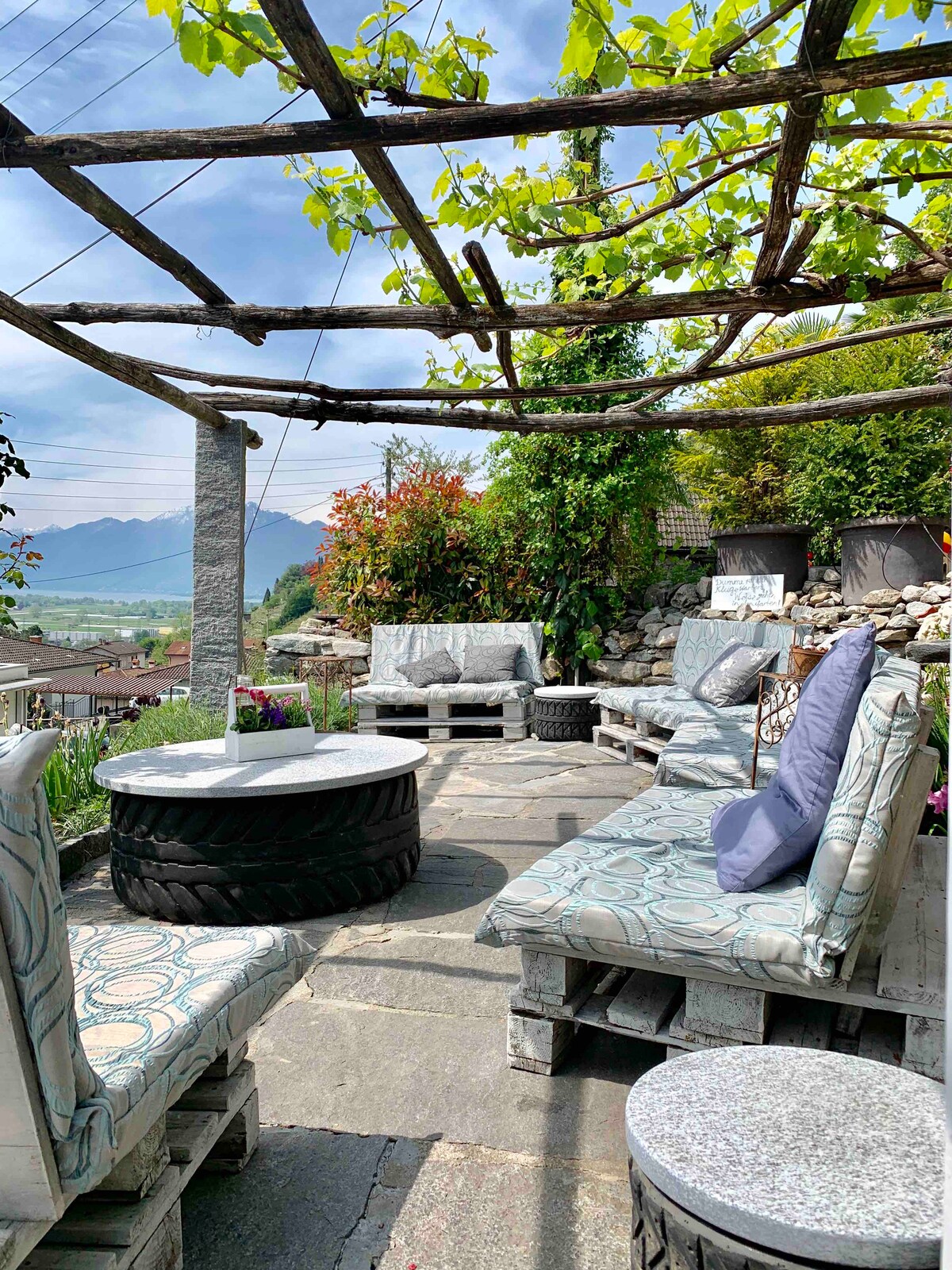 Apartmen percutian cerah di rumah dengan jumlah hanya dua apartmen di Piazzogna - Gambarogno, sesuai untuk pasangan tetapi juga untuk keluarga yang suka alam semula jadi dan bersantai. Pemandangan Tasik Maggiore yang menakjubkan, Valle Maggia, Valle Verzasca, Locarno dan gunung-ganang di sekitarnya mempesonakan anda setiap hari. Teres dan tamannya tersusun cantik dan menjemput anda untuk berjemur. Malam yang romantik dengan matahari terbenam yang hebat sepanjang musim cuti.
