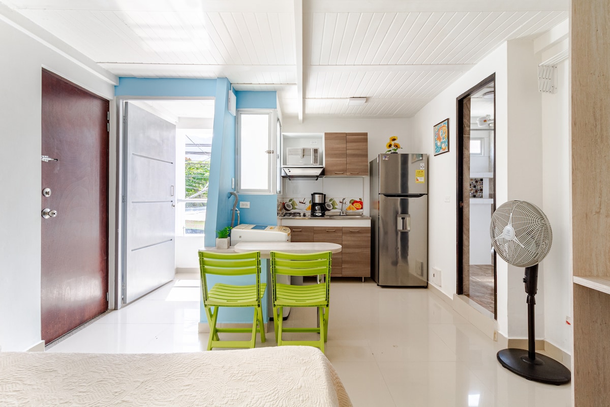 Disfruta de una experiencia con estilo en este alojamiento céntrico al norte de la ciudad, dotado con dos habitaciones una de ellas con una confortable cama king y todas las comodidades que esperas tener al salir de casa. estamos cerca al comercio (tiendas, supermercados, almacenes, bodegas, etc), al transporte ( a 3 minutos del metro y rutas de buses) y al ocio (centros comerciales, gimnasios, discotecas, restaurantes, etc) Cada espacio fue diseñado pensando en ti y tu comodidad.