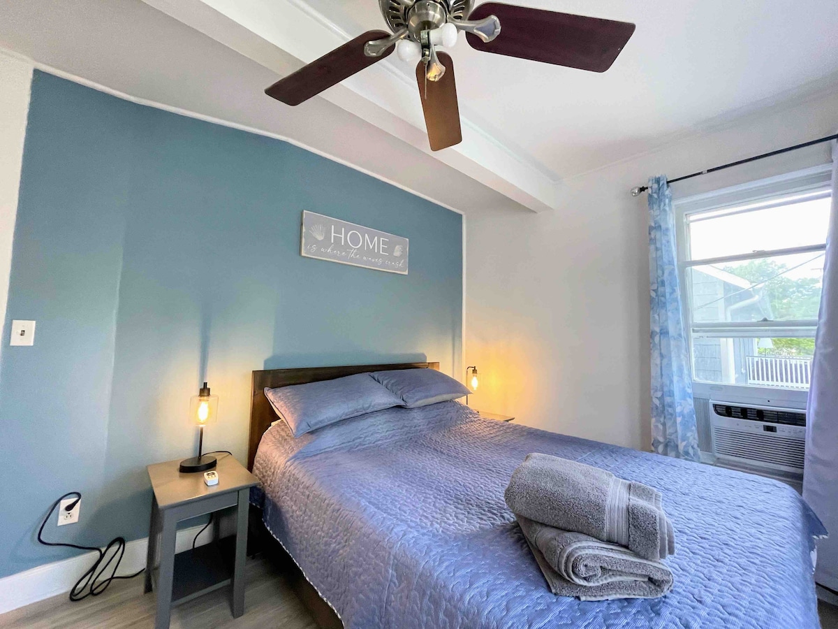 Come enjoy our newly renovated beach house! Sit on the adirondack chairs on the front porch and read a book or BBQ on the back deck. The 1st floor consists of the kitchen, living room, half bath, and laundry. Our large backyard has a grill, outdoor shower, fire pit and plenty of room for fun. The 2nd floor has 3 bedrooms w/balconies and a full bathroom (w/bathtub). We have a long driveway and an easy 10 min walk to the beach. We hope you will enjoy our beach house with a 5-star experience!