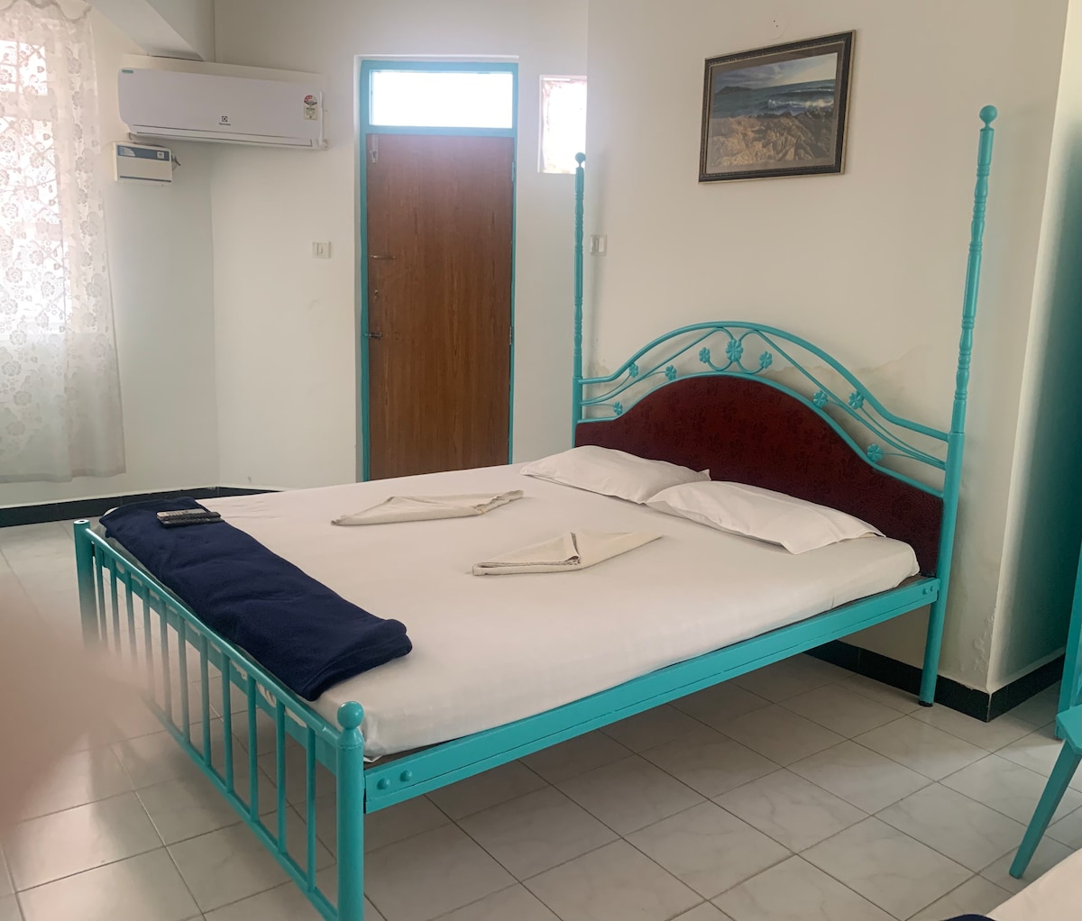 Selamat datang rumah kami! Bilik AC besar dengan katil saiz king dengan meja sisi & bilik mandi bersambung dengan balkoni persendirian menanti anda. Meja makan untuk 2 orang, meja & kerusi untuk belajar atau bekerja disediakan. Anda akan berada di kejiranan yang tenang sangat dekat dengan perhentian bas Dhavlim. Kami juga boleh mengatur pengangkutan ke tempat-tempat bersiar-siar tempatan & lawatan sehari. Menginaplah untuk persekitaran yang tenang dan santai. Kami menyediakan makanan tulen pada kadar standard yang dimasak oleh hos sendiri semasa kami makan setiap hari. Selamat Datang ke Goa