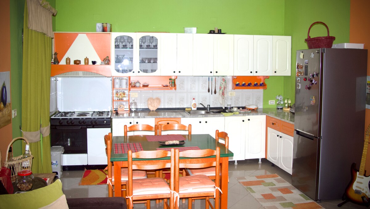 EXCELLENT LOCATION👟🌟Spacious ,illuminated .Amra Apartment consists of two bedrooms. One bedroom with a double bed, and the other with two single beds, from the kitchen, dining and living room, as well as the toilet.The veranda which has a magnificent view. It is positioned in the northeast which gives you the pleasure of enjoying the sunrise. Next to the Amra Apartment is the Maira Apartment . If you are a group of up to 10 people, you can book both apartments.
