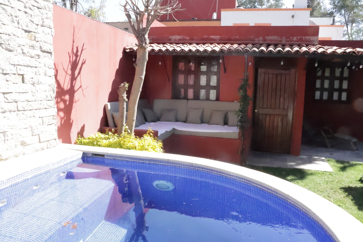 Rumah gaya Mexico yang cantik dan selesa. Untuk 8 orang, terletak 10 minit dengan kereta dari pusat bandar Tequis, 30 minit dari Peña de Bernal dan 20 minit dari pelbagai kebun anggur. Kolam renang 7x4 yang dipanaskan dengan sistem solar persendirian hanya untuk anda. Barbeku, Lubang api, Pendiangan (tidak termasuk kayu atau arang), pancuran air, Jacuzzi, dapur lengkap, WIFI, TV pintar 50" 4K dan TV kabel, NETFLIX, YouTube. Kami menerima 2 haiwan peliharaan sederhana dengan bayaran $300 (daftarkan haiwan peliharaan dalam APLIKASI)