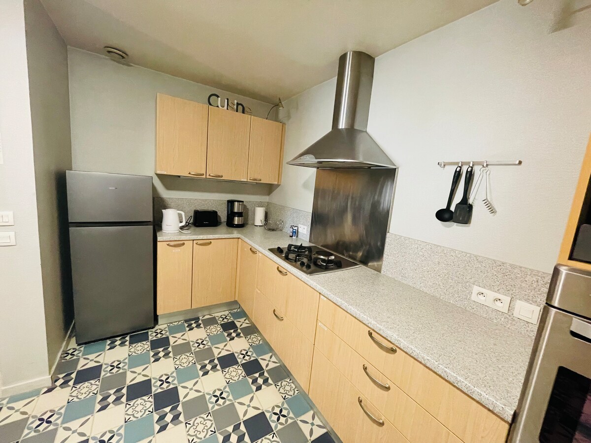 Bersantai di penginapan yang tenang dan elegan di tingkat 3 kondominium Besançon yang ikonik, di halaman belakang, tanpa akses lif. Terletak di jalan utama. Berdekatan dengan semua kemudahan ... Muzium, restoran, stesen kereta api 15 minit berjalan kaki, boleh diakses dengan trem (stesen 5 minit) Pusat membeli-belah di kaki bangunan Citadelle 15 min jauhnya Tempat letak kereta Pasteur yang selamat 5 minit (1 jam percuma dan €1 semalam dari 7 malam hingga 9 pagi)