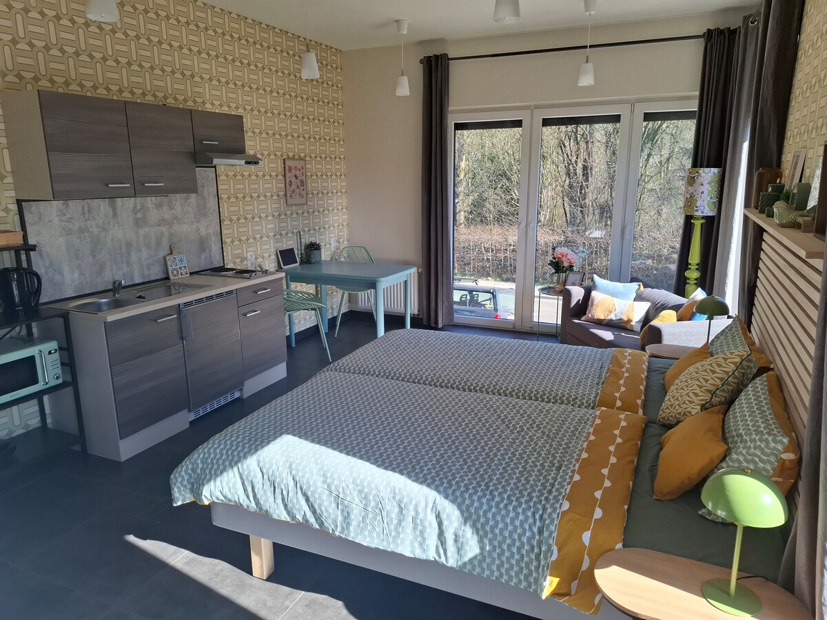 Apartmen yang dikelilingi oleh padang rumput ini sangat luar bandar di sepanjang laluan Mergelland dan tidak jauh dari Maastricht dan Valkenburg. Kedua-duanya dari ruang tamu dan bilik tidur mempunyai pemandangan indah ke atas landskap berbukit. Pusat bandar Maastricht, MUMC+, Maastricht University dan Mecc boleh diakses dari lokasi ini dengan pengangkutan awam. Tempat yang sangat baik untuk penginapan santai dan perniagaan!