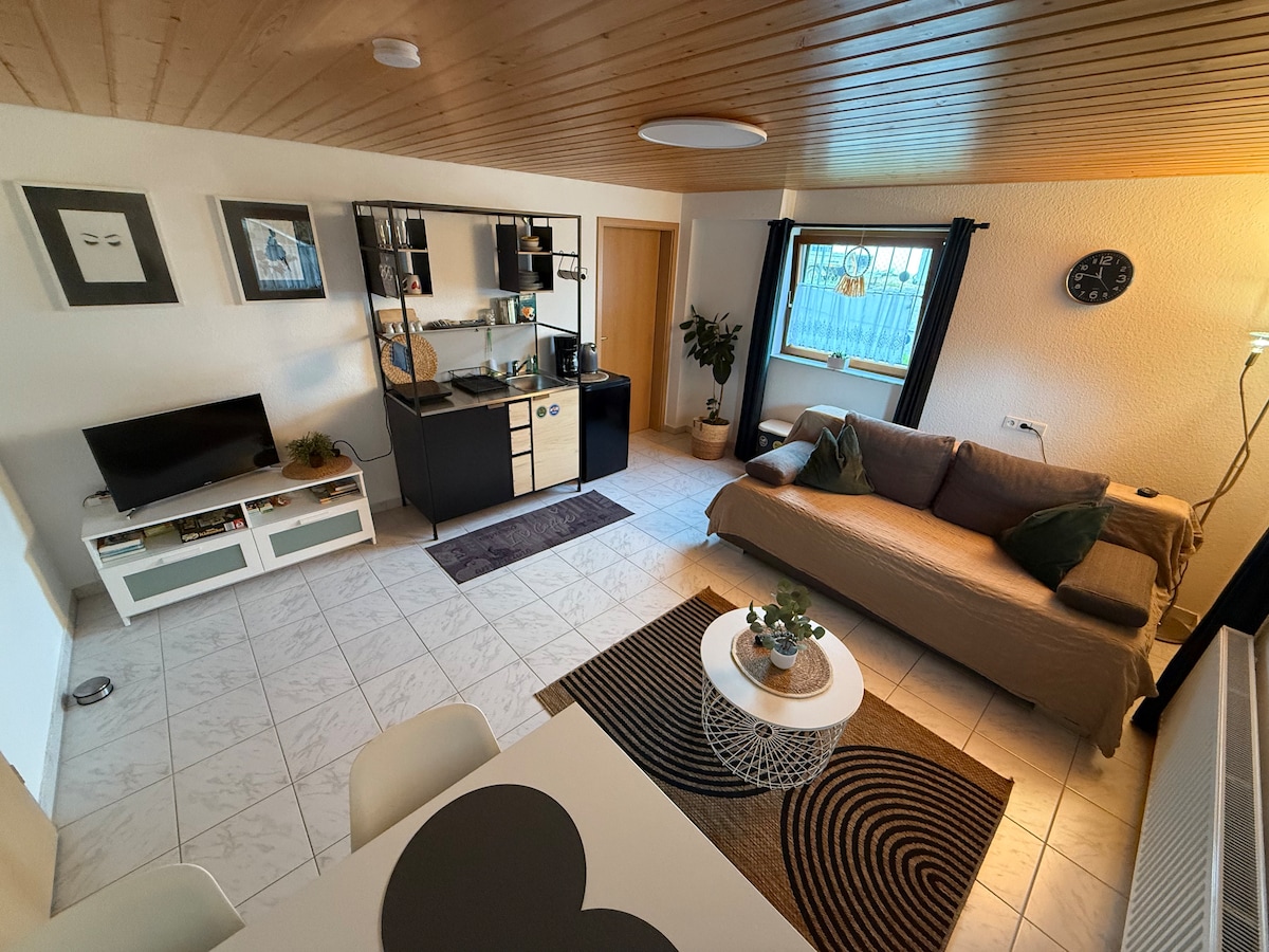Flat nenek (ELW) ditawarkan dengan pintu masuk berasingan, bilik mandi besar, dapur kecil dan teres dan taman yang hebat. ELW mempunyai ruang tamu seluas 41 m2 (32 m2 dengan teres 19 m2 boleh dikreditkan pada 50%) di bangunan baru (2021). Apartmen ini berperabot lengkap, untuk maksimum 2 orang (satu katil double). Dari teres dan apartmen anda mempunyai pemandangan panorama ke atas Swabian Alp, Istana Neuffen, Istana Teck dll.