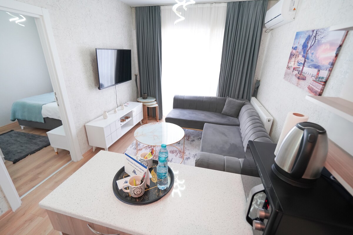 Modern tasarımı ve konforlu yaşam alanıyla öne çıkan dairemiz hem iş seyahatleri hem şehir içi konaklamalar için ideal bir tercihtir. Güzelyurt Metrobüs durağına 4–5 dakika yürüme mesafesinde TÜYAP Fuar Merkezi’ne yalnızca 4 durak uzaklıktadır. Çarşı, market ve günlük ihtiyaç noktalarına birkaç adım mesafede olup merkezi ve güvenli bir konumda yer alır. Queen size yatak, klima ve tam donanımlı mutfak ile rahat bir konaklama sunar. Temassız giriş mevcuttur. KİMLİK bildirimi zorunludur.