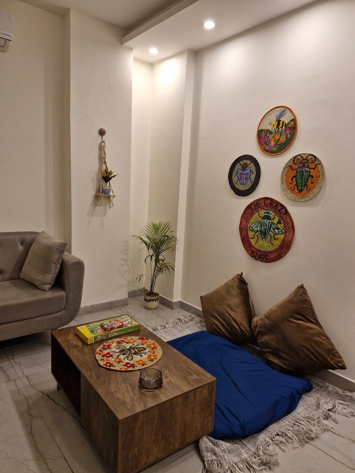 Step into a vibrant blend of tradition and modernity at our thoughtfully designed apartment, where teal-toned interiors meet a curated collection of Indian art. Adorned with stunning Madhubani paintings, abstract artworks, and prints sourced from across Jaipur, this space is a visual journey through heritage and creativity. Whether you are a solo traveler, a couple, or an art loving explorer, this apartment offers a cozy yet stylish setting with all the comforts of a modern stay.