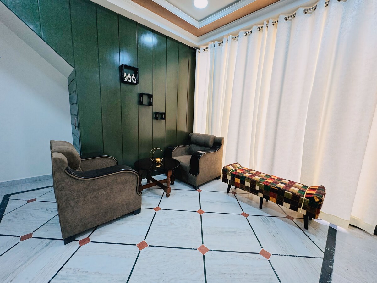on road property with free parking facility,2nd floor penthouse with sofa double bed led dressing table fridge kitchen RO water Air conditioner and open area