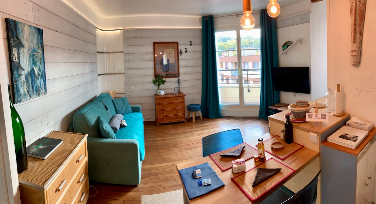 Penarafan purata 4.93 daripada 5, 30 ulasanStudio cerah dengan teres, di pintu gerbang Paris!