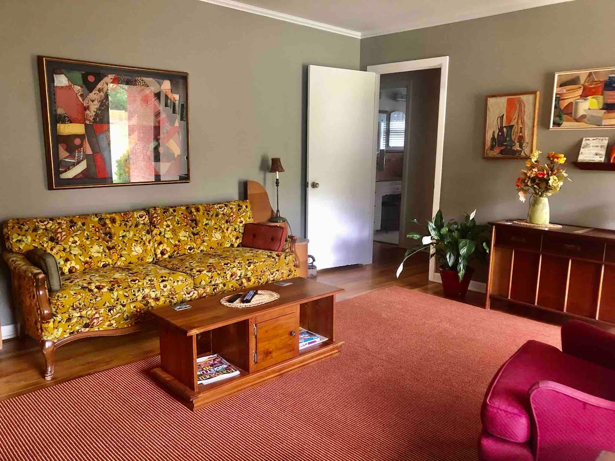 "Farmor" is Swedish for "grandmother." I have so many fond memories of both of my grandmothers along with many of their possessions ~ from a 1960's couch to Danish modern furniture. I've blended it all into a roomy, very eclectic and comfortable place for guests to relax!