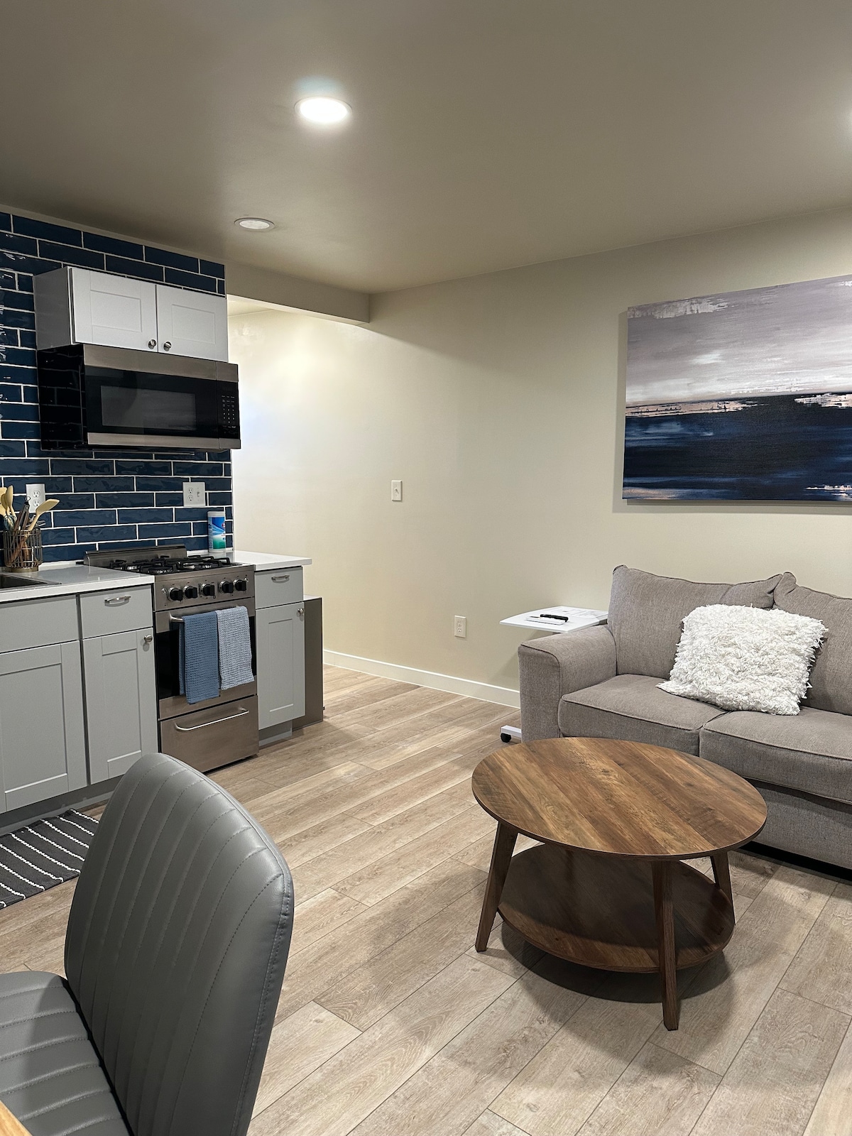 Dua bilik tidur yang luas, 1 apartmen bawah tanah mandi dengan dapur penuh (dapur, peti sejuk/pembeku, ketuhar gelombang mikro, pembakar roti, peralatan perak, dll. Ruang tamu mempunyai pendiangan gas yang berdiri sendiri, yang menjadikan apartmen ini sangat selesa. Terdapat juga TV dengan Amazon Firestick, yang membolehkan tetamu mengakses Netflix, Hulu, YouTube, dll. Setiap bilik tidur mempunyai katil queen size yang selesa, meja solek, dan pendiangan elektrik untuk menambah keselesaan dan suasana.