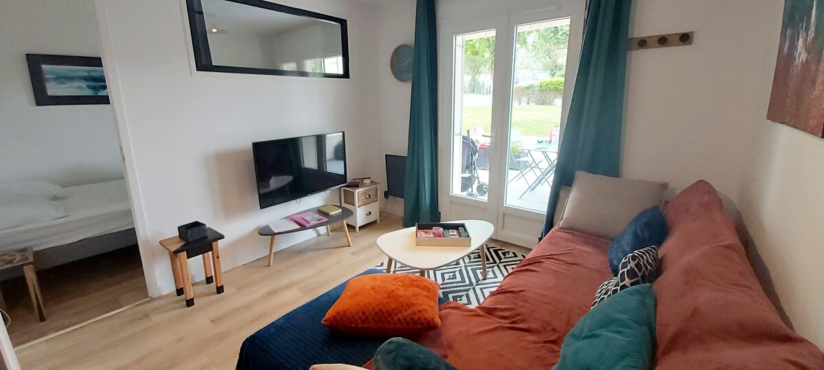 Apartmen menghadap pantai Porscarn, menghadap Pointe de la Torche. Terletak di atas restoran Mambo (tenang dan kalis bunyi dengan baik), ia menempatkan sehingga 6 orang: 2 bilik tidur (1 katil double, 2 katil single) dan sofa katil. Sesuai untuk meluncur dan pencinta alam semula jadi. Dapur lengkap, bahagian luar kecil dengan pancuran mandi, ruang untuk papan dan barbeku. Sesuai untuk penginapan bersama keluarga atau rakan-rakan.