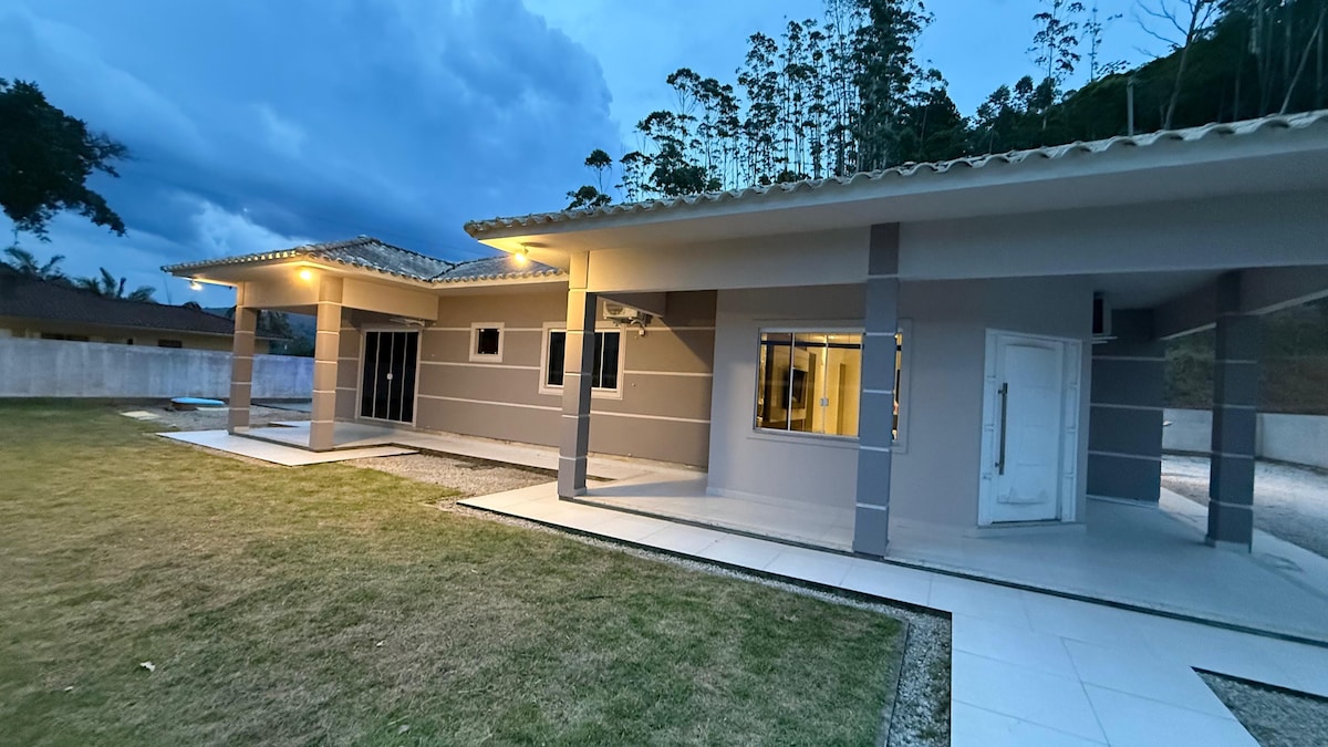 O sítio está localizado na Grande Florianópolis/SC, na àrea rural de Biguaçu, em Três Riachos. Casa climatizada, com varandão. Sala e cozinha conjugadas com pé direito duplo, lareira, churrasqueira e fogão a lenha, 4 quartos sendo 1 suíte. Lavanderia, garagem coberta p/ 2 carros e área de jogos c/ sinuca, pebolim e hockey. Parque infantil, quadra poliesportiva iluminada, piscina, 3 baias para cavalos, torre mirante para a paisagem, riacho natural, lago com carpas e árvores frutíferas.