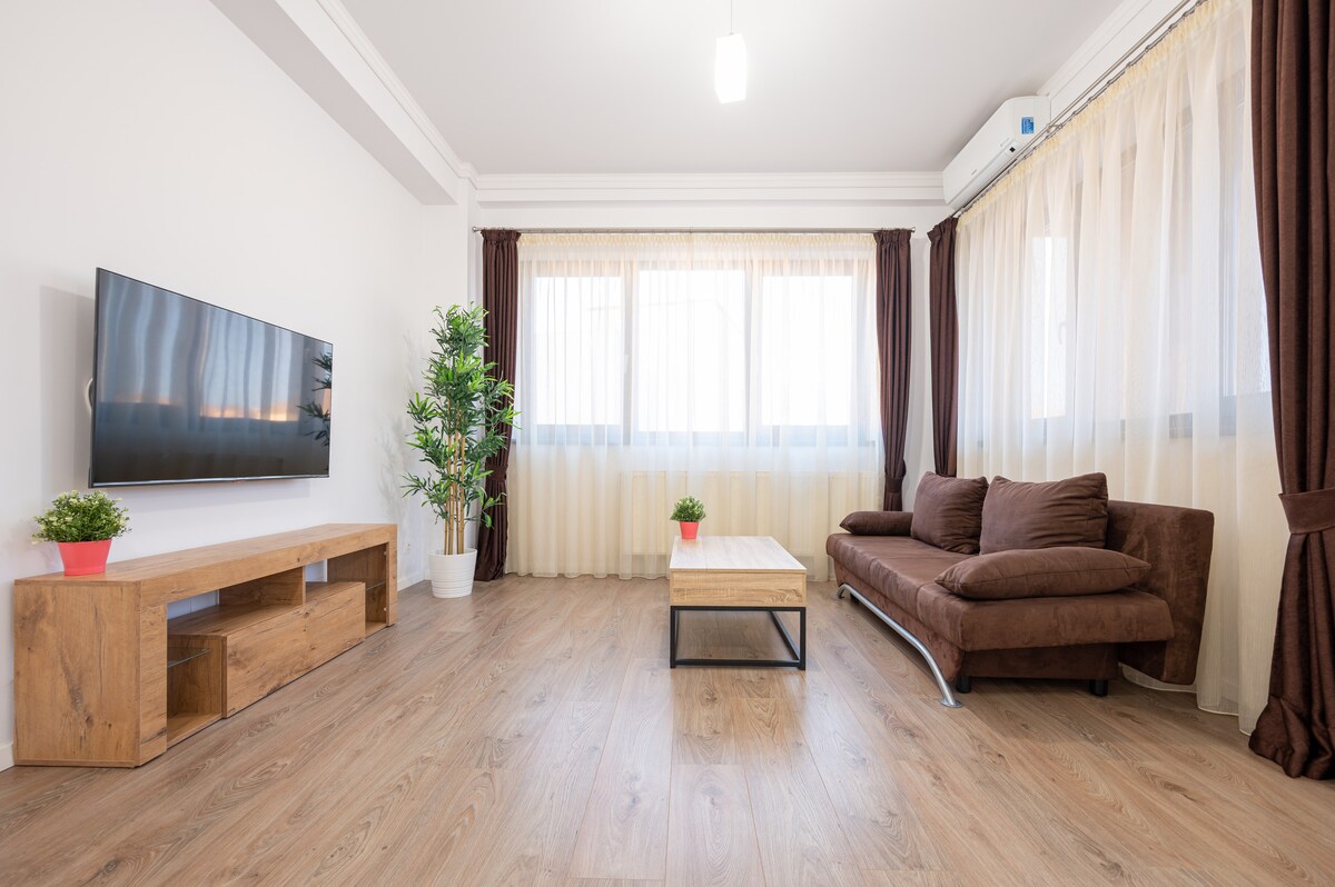 Selamat datang percutian sempurna anda! Apartmen satu bilik tidur yang bergaya dan moden ini menawarkan semua yang anda perlukan untuk penginapan yang selesa dan tidak dapat dilupakan. Nikmati kemudahan dua bilik mandi, dan ruang tamu yang cerah dan lapang sesuai untuk berehat. Sama ada anda berada di sini untuk perniagaan atau percutian, apartmen bergaya ini berfungsi sebagai pangkalan yang hebat untuk meneroka semua yang ditawarkan oleh Oradea. Tempah penginapan anda hari ini dan alami keselesaan, gaya dan pemandangan yang menakjubkan!