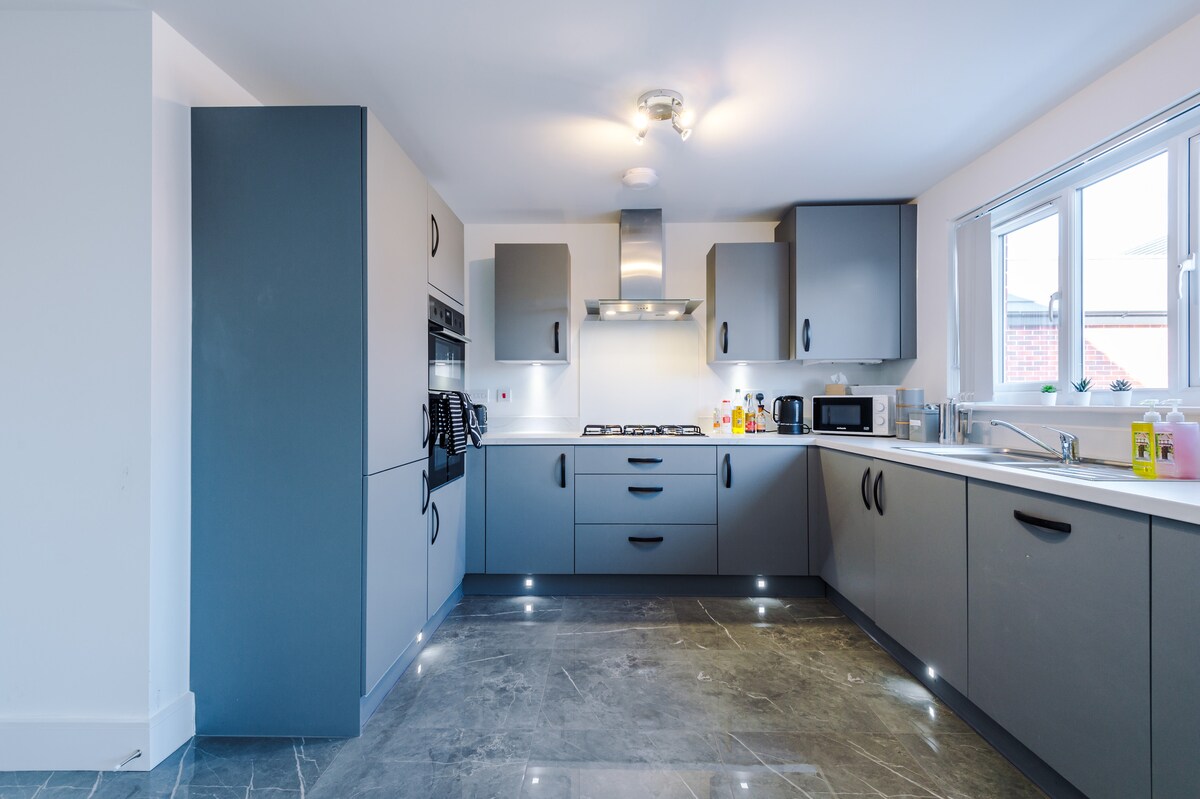 Newly Refurbished in April 2025. Just 5 minutes to A55 services, McDonald's/Subway etc. Large 90'' Cinema TV in Lounge, 65'' in kitchen, both with BT/Sky Sports, Amazon Prime, Disney+, Netflix, including 2 double Sofa Beds. Free use of the downstairs Gym, Free Parking outside the property. Large Kitchen, 2 Bedrooms on 1st Floor with Double & Single Beds & En-Suite/Showers. 2nd floor 1 room with a double & a single bed, 1 room with a Double & Bunk Beds, both with En-Suite Showers & Baths.