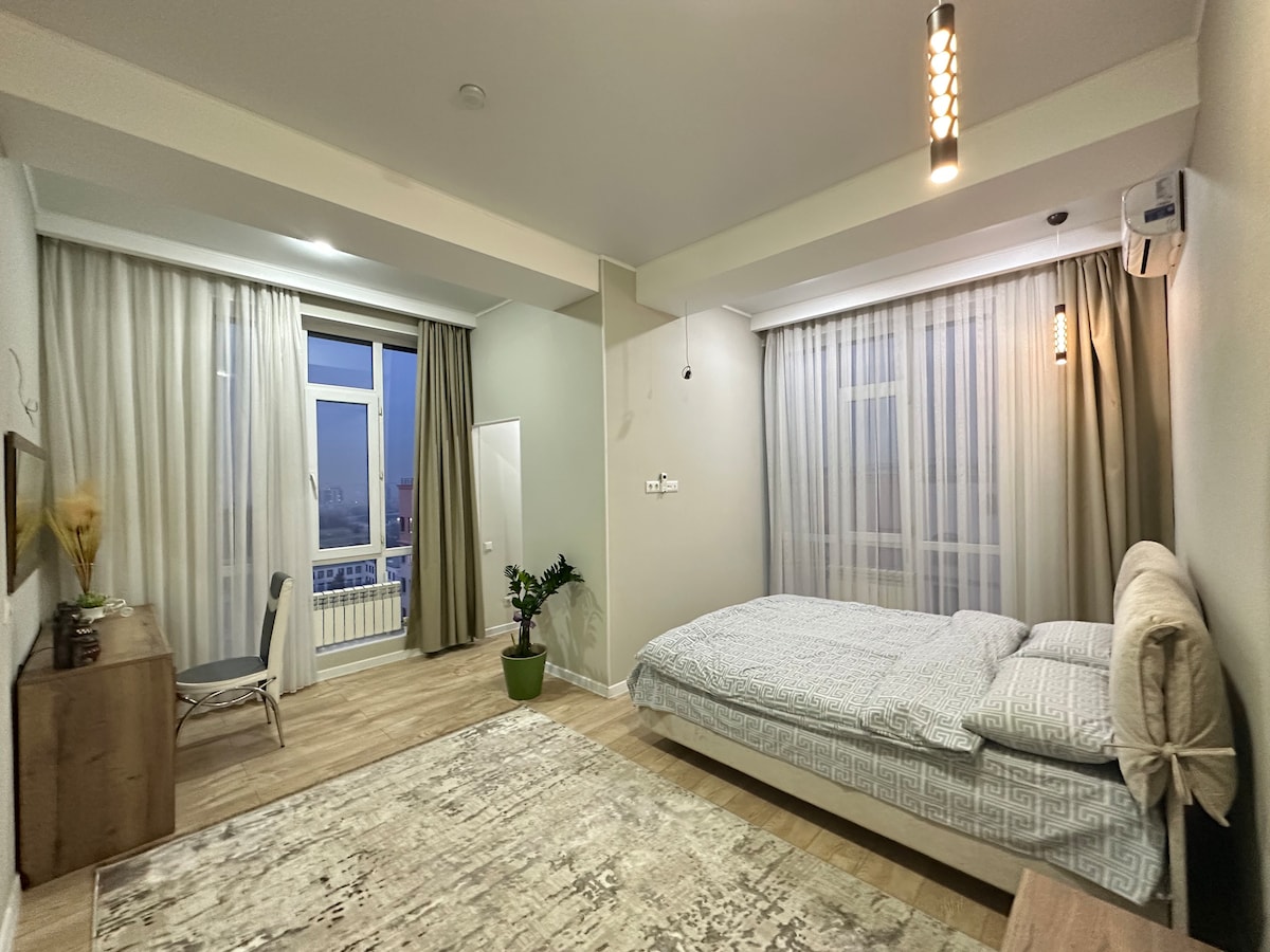 Selamat datang ke apartmen mewah dan luas kami yang terletak di tengah-tengah Bishkek! Masuk ke tempat yang selesa dan mudah di mana setiap perincian telah direka dengan teliti untuk memastikan penginapan yang tidak dapat dilupakan. Sentiasa berhubung sepanjang penginapan anda dengan Wi-Fi berkelajuan tinggi. Dan dengan keselamatan 24/7, anda boleh berehat dengan tenang kerana mengetahui bahawa keselamatan anda adalah keutamaan kami. Sama ada anda berada di sini untuk perniagaan atau percutian, apartmen kami menyediakan rumah yang sempurna.