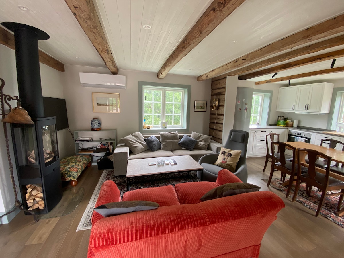 Rumah ini dikelilingi oleh hutan dan taman yang indah yang memberikan akses kepada berjalan-jalan di hutan yang indah di mana anda boleh memetik blueberry pada musim panas dan cendawan pada musim luruh. Ia adalah perasaan yang tidak dapat digambarkan untuk bangun awal pagi, minum secawan kopi, duduk di balkoni dan melihat alam semula jadi bangun. Hirup udara segar yang masih agak lembap selepas malam, dengar burung, dan nikmati alam semula jadi. Di ruang tamu terdapat pendiangan untuk pemanasan semasa musim luruh dan musim bunga yang sejuk.
