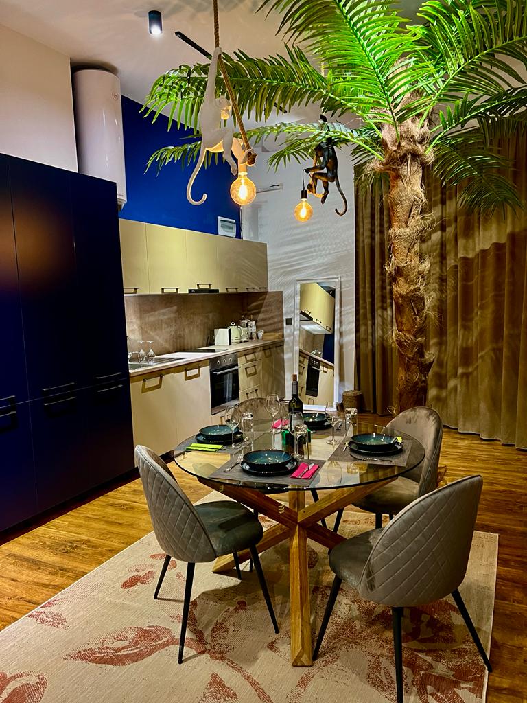 Apartmen romantik dan selesa dengan segala keselesaan rumah untuk penginapan terbaik dan santai. Dilengkapi dengan TV pintar, bunyi muzik tambahan, kawalan, tablet dan pencahayaan. Ruang makan dan dapur kecil dengan ruang yang lengkap,adalah, perkhidmatan makan, pembakar roti, cerek teh, mesin pembuat kopi, dan bekalan untuk mereka. Tab mandi di ruang tamu dengan pemandangan panorama bandar dan matahari terbenam. Bilik tidur dengan ruang solekan dan TV pintar. Seluruh apartmen mempunyai pemandangan panorama.