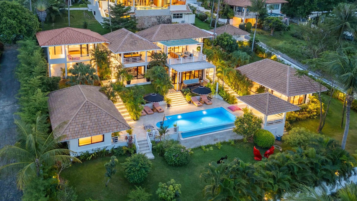 Ease into your dream Thai vacation with the seclusion, privacy, and fine facilities of this stylish villa. Friendly staff will welcome you at the grand wooden door, before leading you past the bright terrace, shining pool, laid-back long bar, and palapa-style relaxation spots. Pristine, organic style abounds inside, with picture-perfect beaches, buzzing markets, and tasty Thai restaurants nearby. Villa Palapa offers a pleasant combination of pure white and tropical teal with an integrated color scheme that runs both inside and out. Guests will wake to the beguiling, concentric wooden roof of the royal bedrooms, with ornate furniture and crafted statues infusing rich character into the rooms. Fine curtains, flashes of stained glass, and lively vegetation adds to the aura of well-thought out spaces, with blackstone surfaces distinguishing the comfortable bathrooms. A complimentary scrumptious breakfast awaits you daily in the finely-decorated, dynamic kitchen space, with the bright light of the sun terrace a constant temptation for guests. Located close to the one of the most happening districts of Koh Samui, guests are spoilt for choice regarding day activities. Kilometres of golden sand and blue water await at local Bophut Beach, with close by restaurants and welcoming bars offering a new chill-out spot every day. Fascinating boat rides out to the rocky spires and grand isolation of the Angthong National Marine Park are a popular option, as is exploring the trails and lanes of the island’s interior, hiding impressive viewpoints and cascading waterfalls. After a busy day, a delicious cocktail awaits at the garden bar. Copyright © Luxury Retreats. All rights reserved. BEDROOM & BATHROOM • Bedroom 1 - Primary: Super king size bed, Twin size bed, Ensuite bathroom with stand-alone rain shower, Dual vanity, Walk-in closet, Television, Sonos sound system, Safe, Balcony, Mountain view • Bedroom 2: King size bed, Twin size bed, Ensuite bathroom with stand-alone rain shower, Television, Safe, Desk, Direct access to pool • Bedroom 3: King size bed, Twin size bed, Ensuite bathroom with stand-alone rain shower, Television, Safe, Desk, Direct access to pool • Bedroom 4: King size bed, Twin size bed, Ensuite bathroom with stand-alone rain shower, Television, Safe, Desk, Direct access to pool • Bedroom 5: King size bed, Twin size bed, Ensuite bathroom with stand-alone rain shower, Television, Safe, Desk, Direct access to pool • Bedroom 6: 2 Twin over double size bunk beds, Ensuite bathroom with stand-alone rain shower, Television, Desk, Safe, Direct access to pool • Bedroom 7: King size bed, 2 Twin size beds, Ensuite bathroom with stand-alone rain shower, Television, Pool table, Balcony, Outdoor furniture, Mountain view FEATURES & AMENITIES • More under “What this place offers” below OUTDOOR FEATURES • Day bed Included: • More under “What this place offers” below Extra cost (advance notice may be required): • Activities and excursions • Babysitters • More under “Add-on services” below