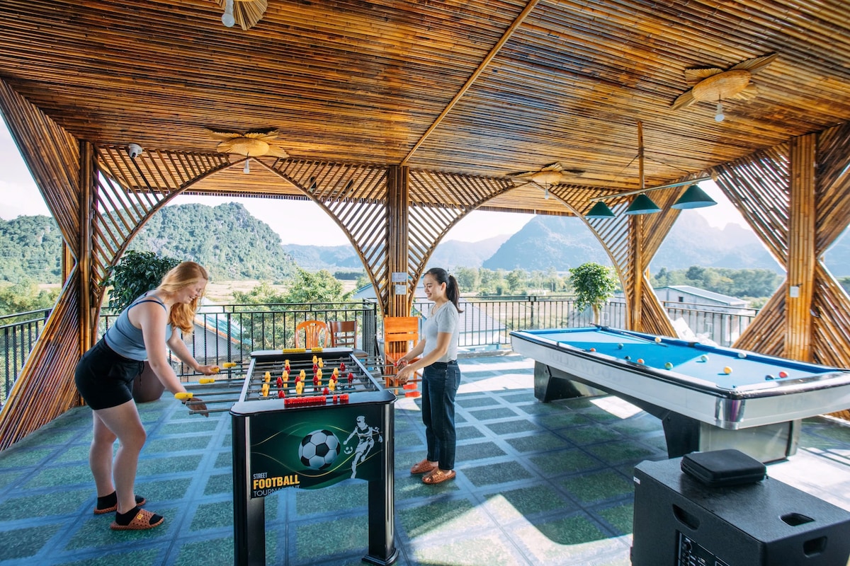 Located in Phong Nha – the caving capital of South East Asia, our cozy room is overlooks the peaceful Son River where you can swim in crystal clear waters. Engulfed by surrounding limestone mountains, green paddy fields, and the gateway to explore Phong Nha national park. Green Riverside Cosy Home is your cosy, one-stop, home away from home, a perfect place to connect with nature , enjoy authentic Vietnamese local experience and relaxed social vibes.